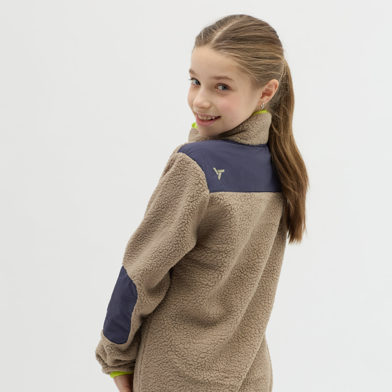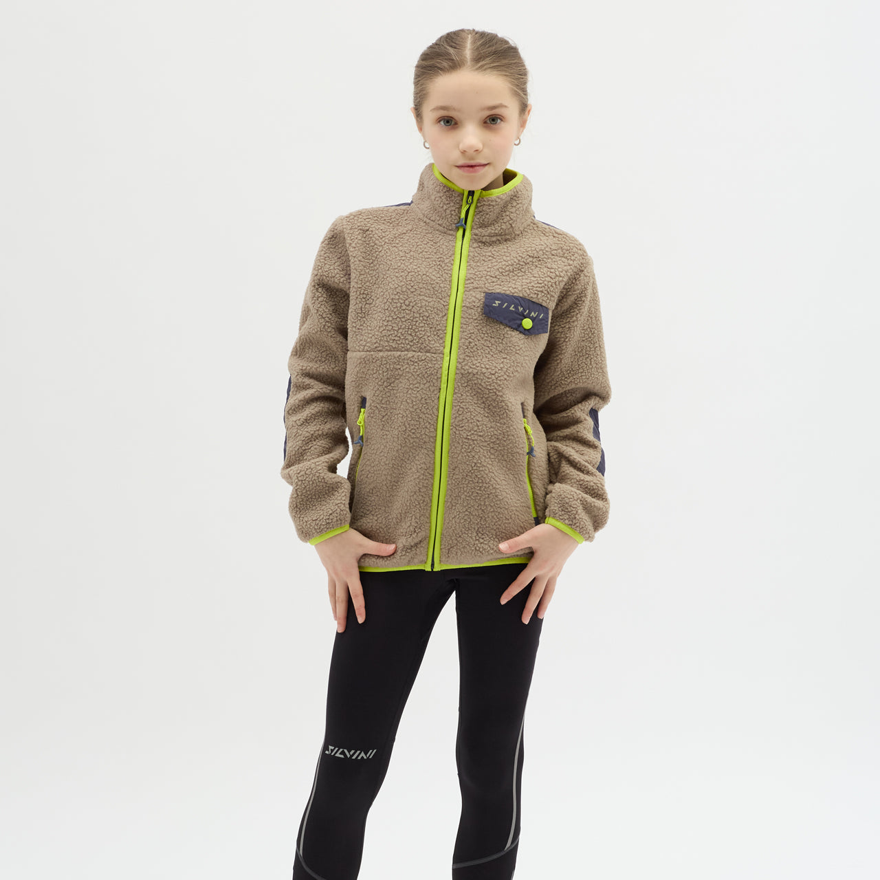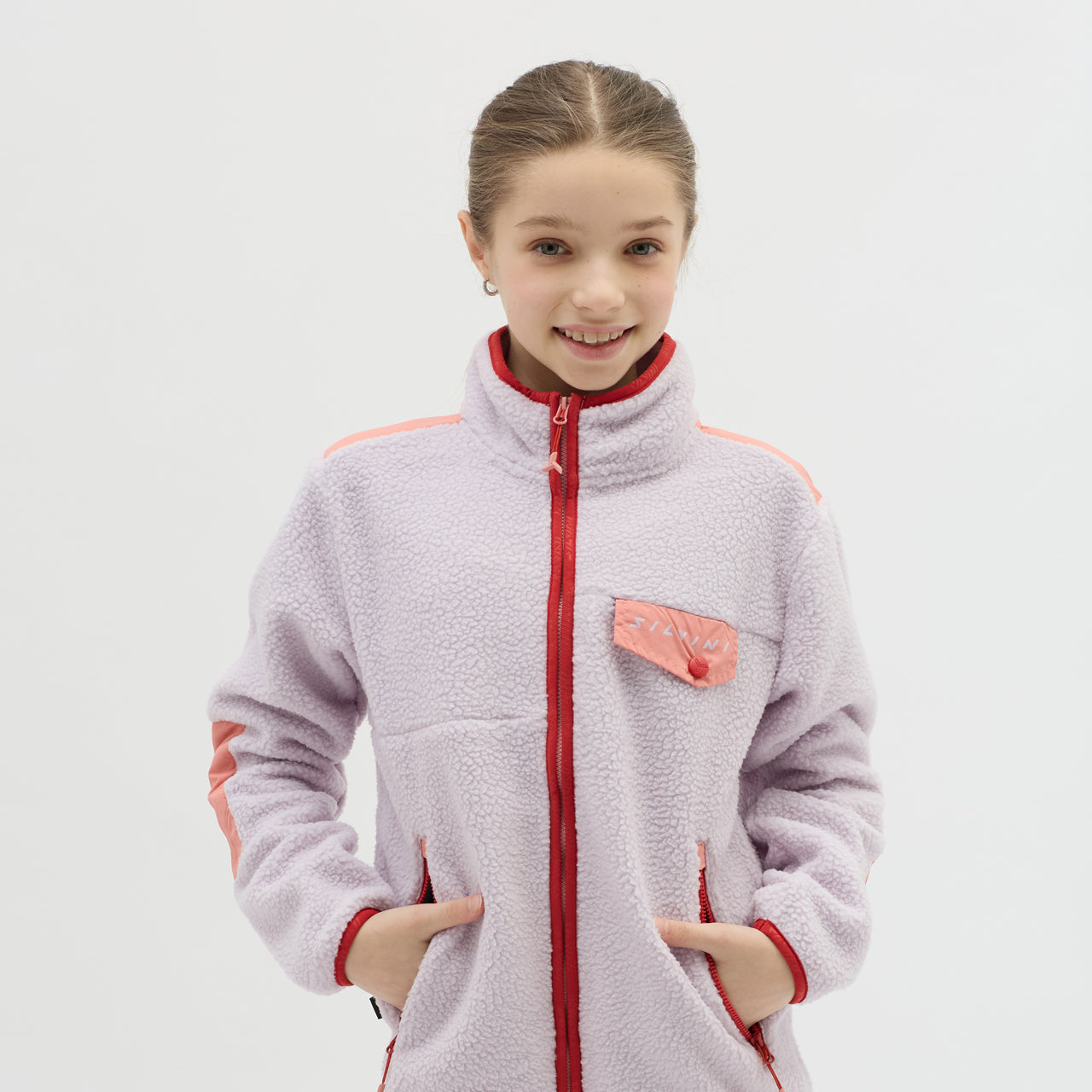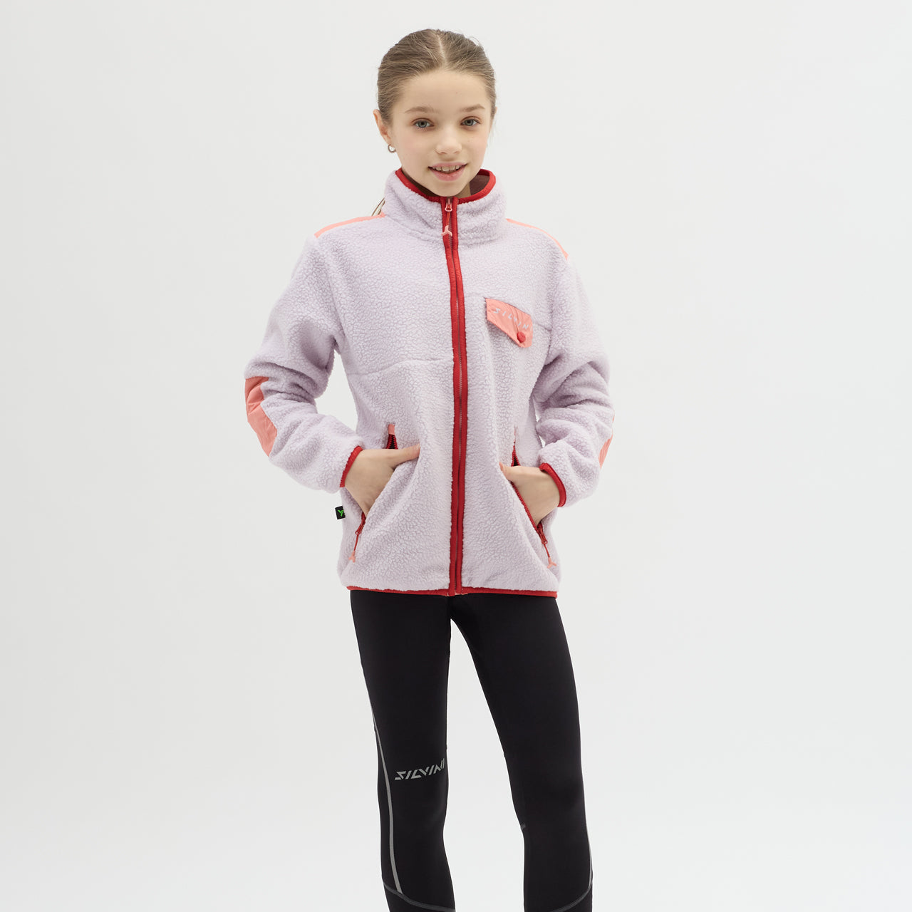The Ortisei children’s fleece is made from recycled Termico Fleece, offering warmth, practical pockets, and reflective details for safe outdoor activities.