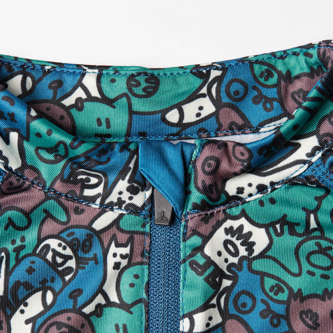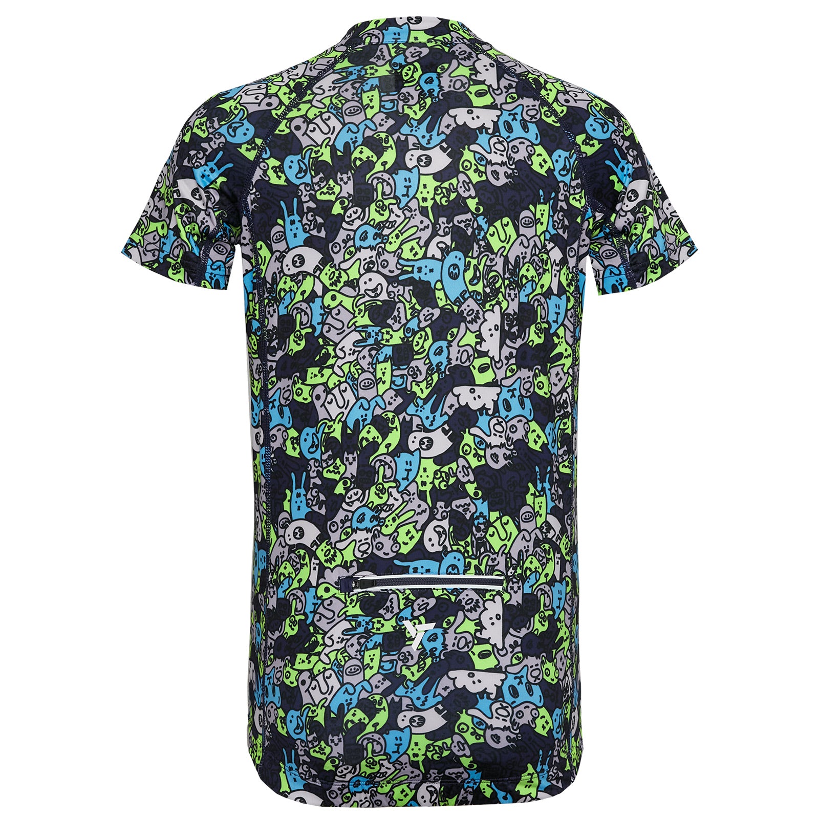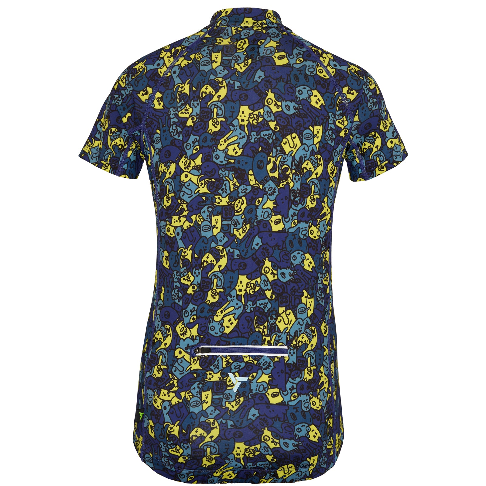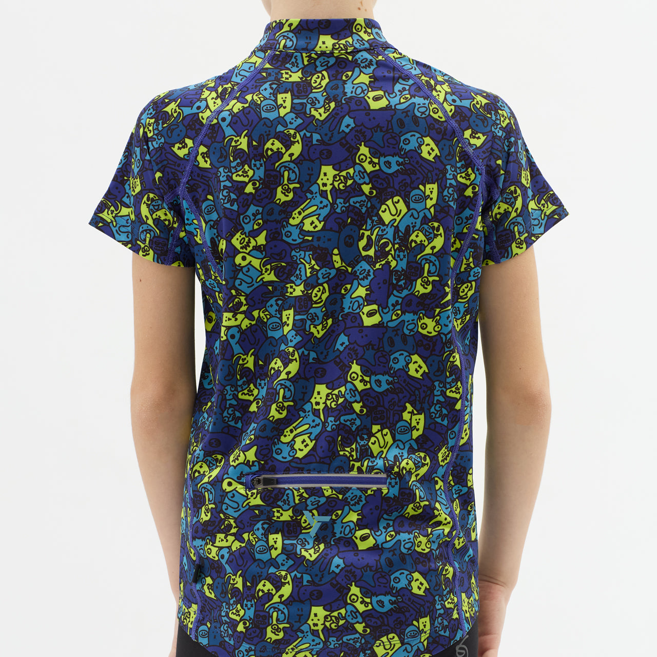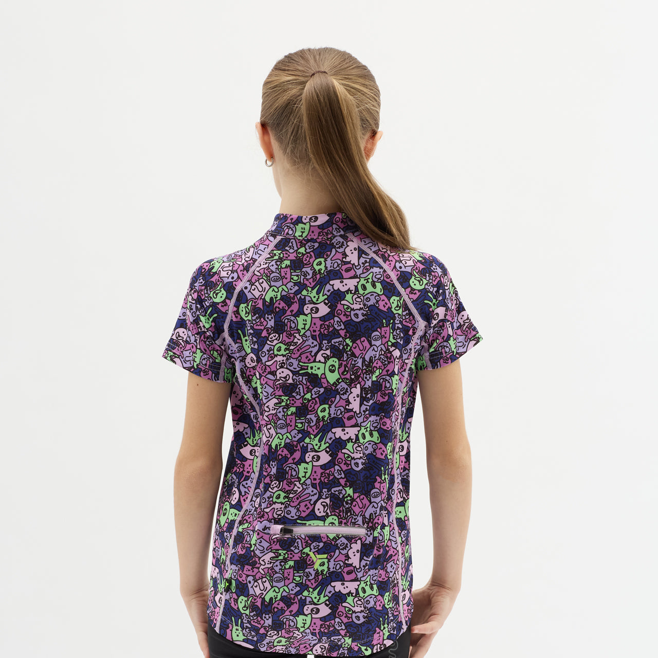 Children's cycling jersey made of breathable and elastic Light MESH material with a short front zip. On the back extended part there is a zipped pocket, silicone elements. There are safety reflexes on the jersey.