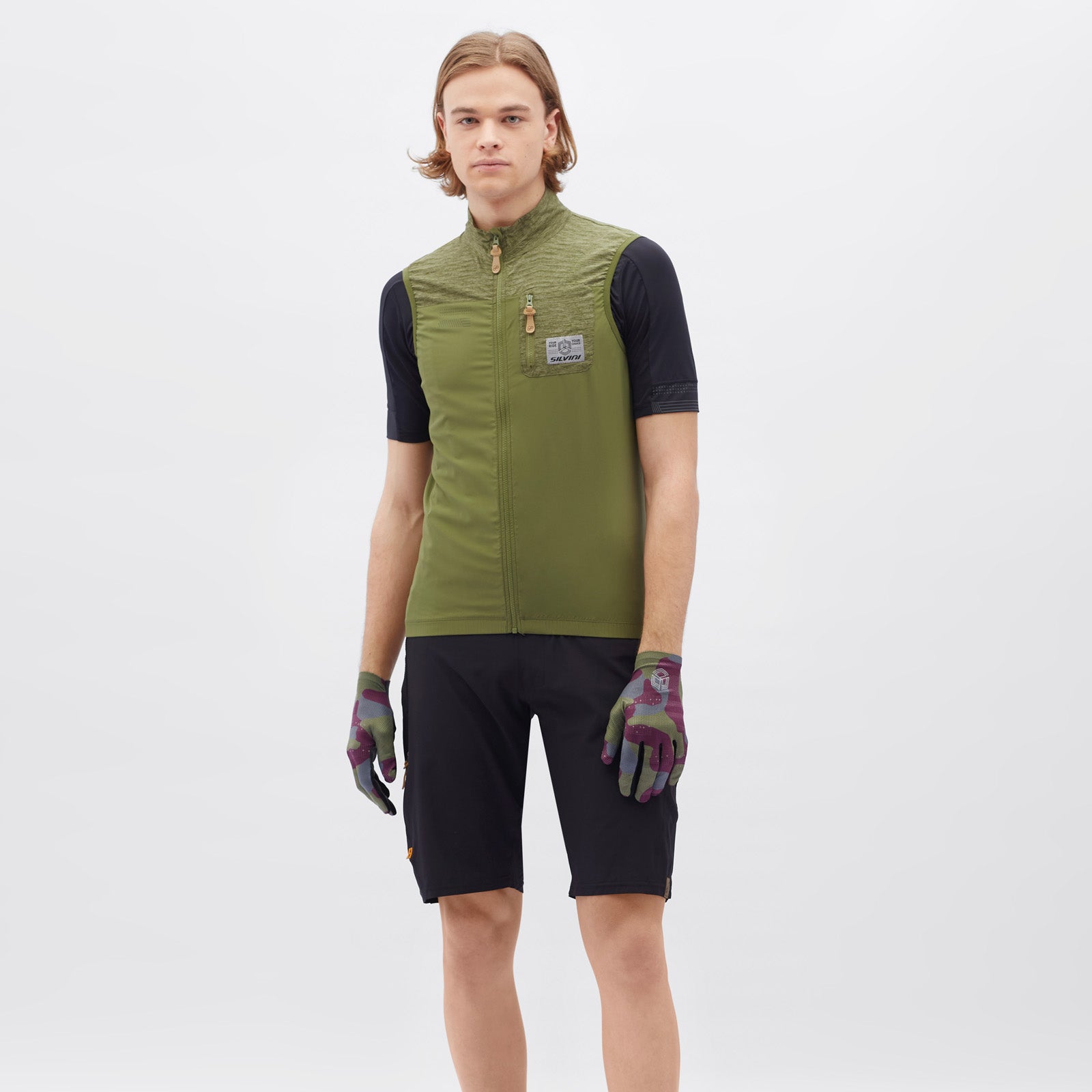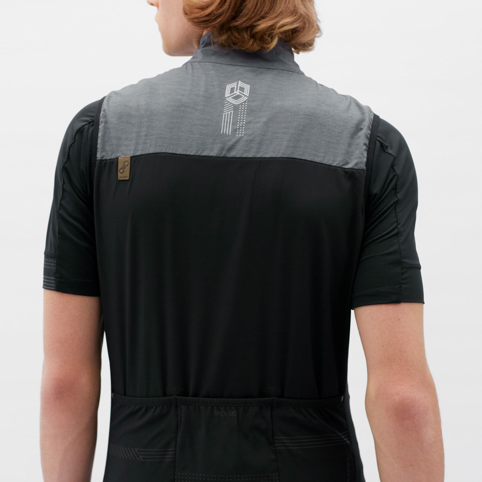 Men’s Cairo vest in lightweight, breathable Woven Light, slightly tailored, with three back pockets, zip pocket, and reflective details. Ideal for gravel biking and cycling.