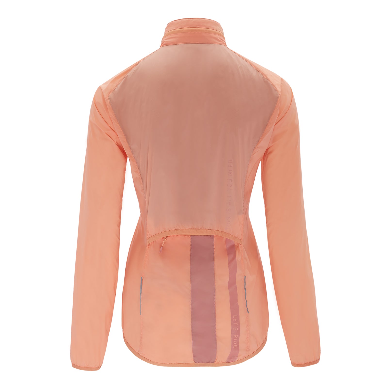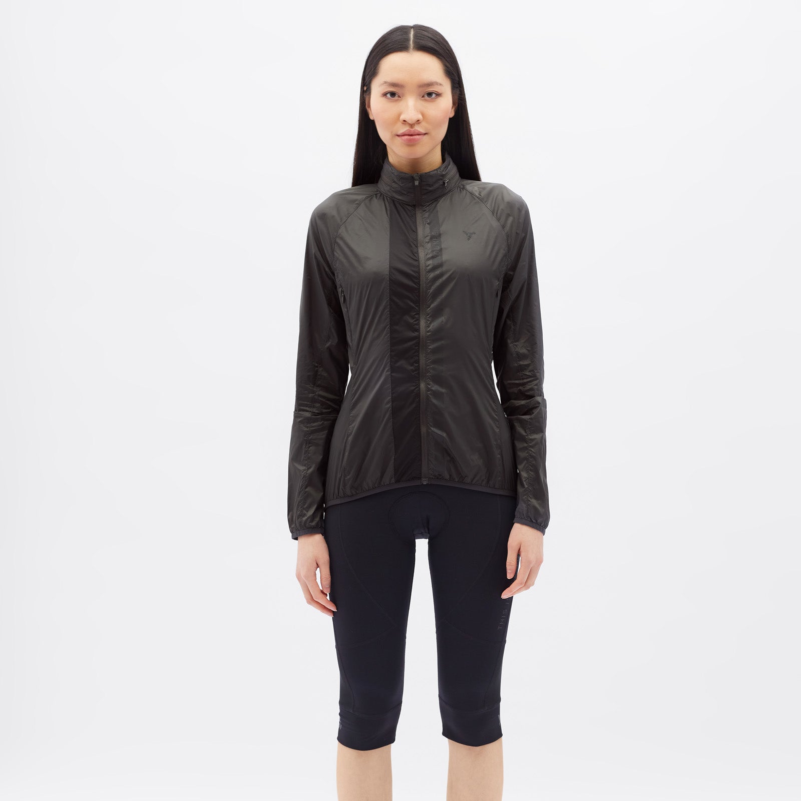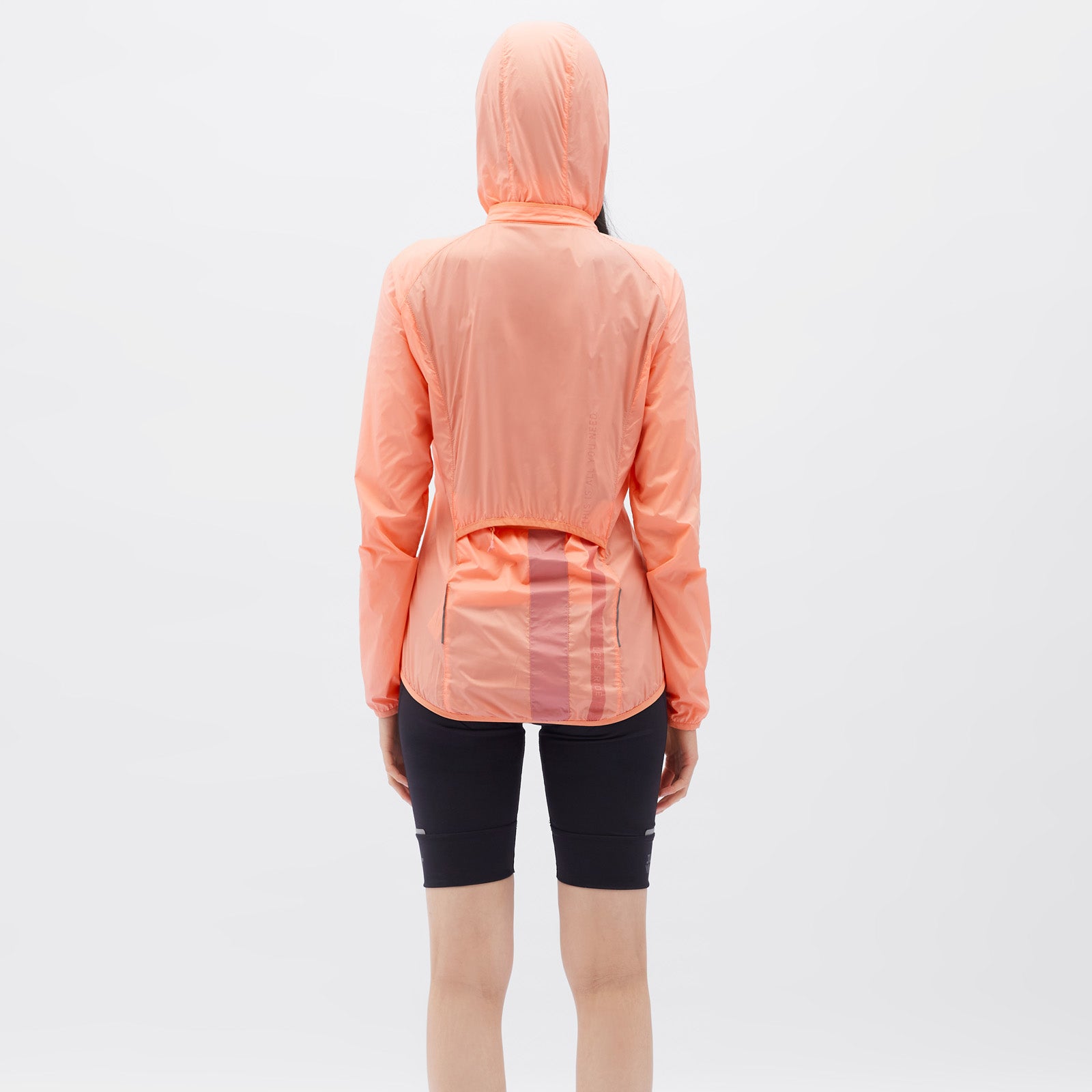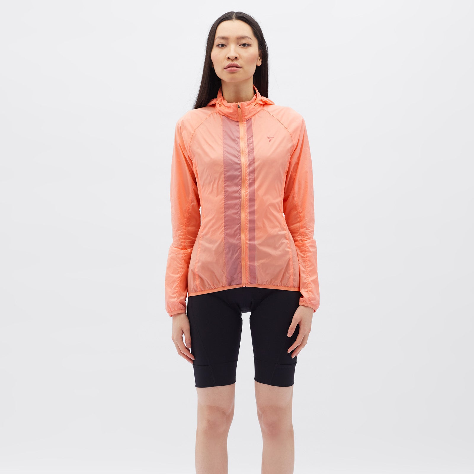 Women’s ultralight Gela cycling jacket – windproof, packable into the back pocket, with hood and ventilation, perfect for riding in any weather.