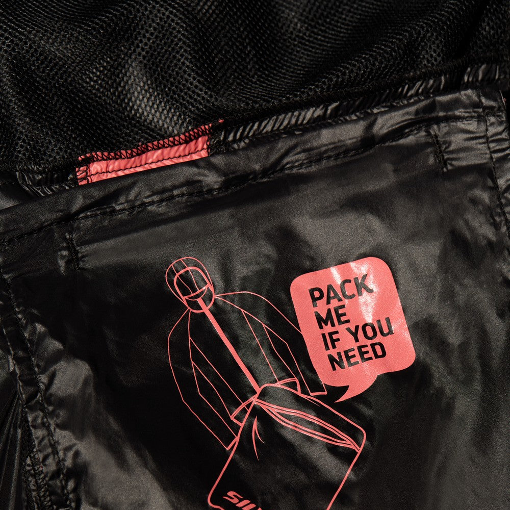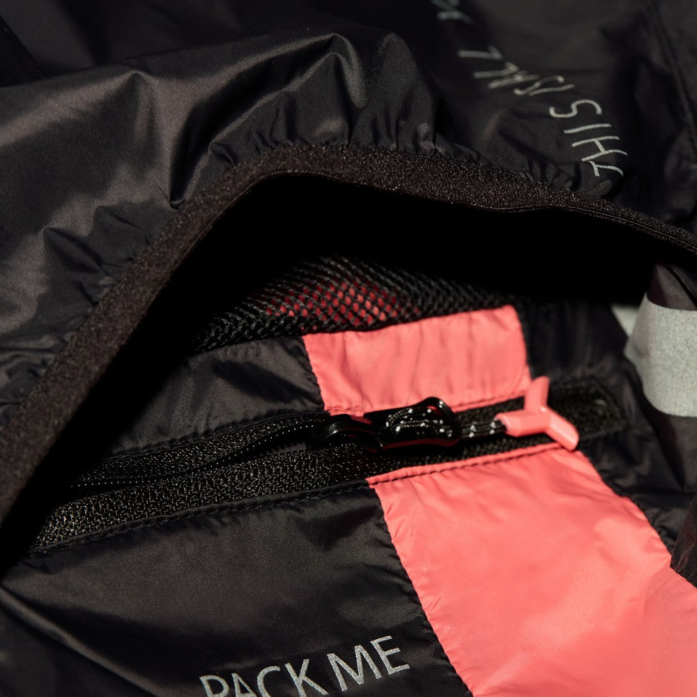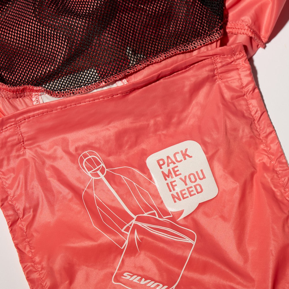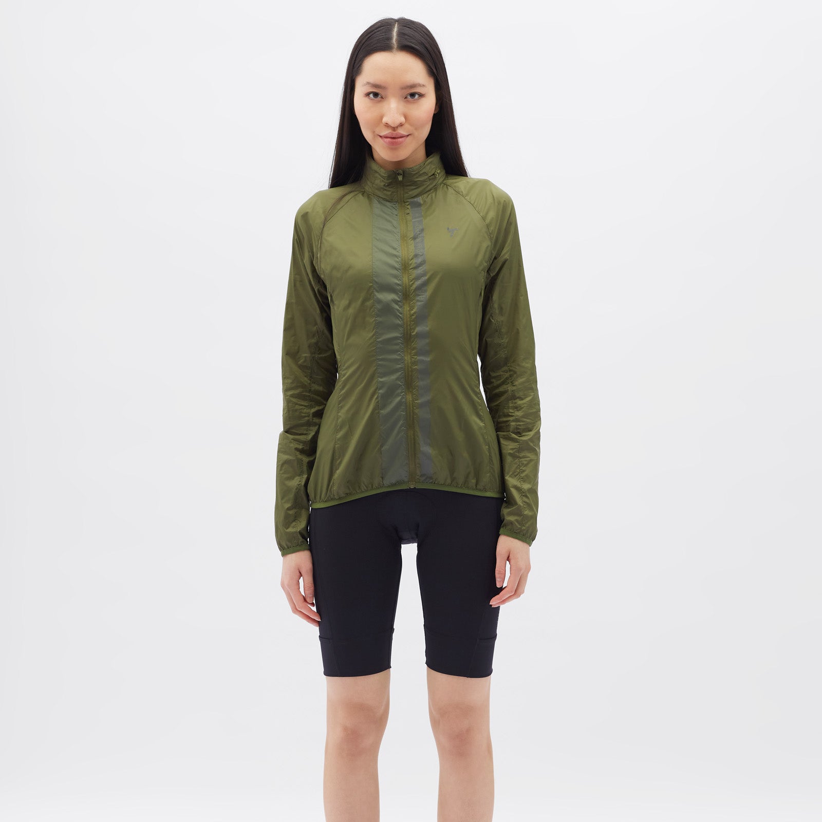 Women’s ultralight Gela cycling jacket – windproof, packable into the back pocket, with hood and ventilation, perfect for riding in any weather.