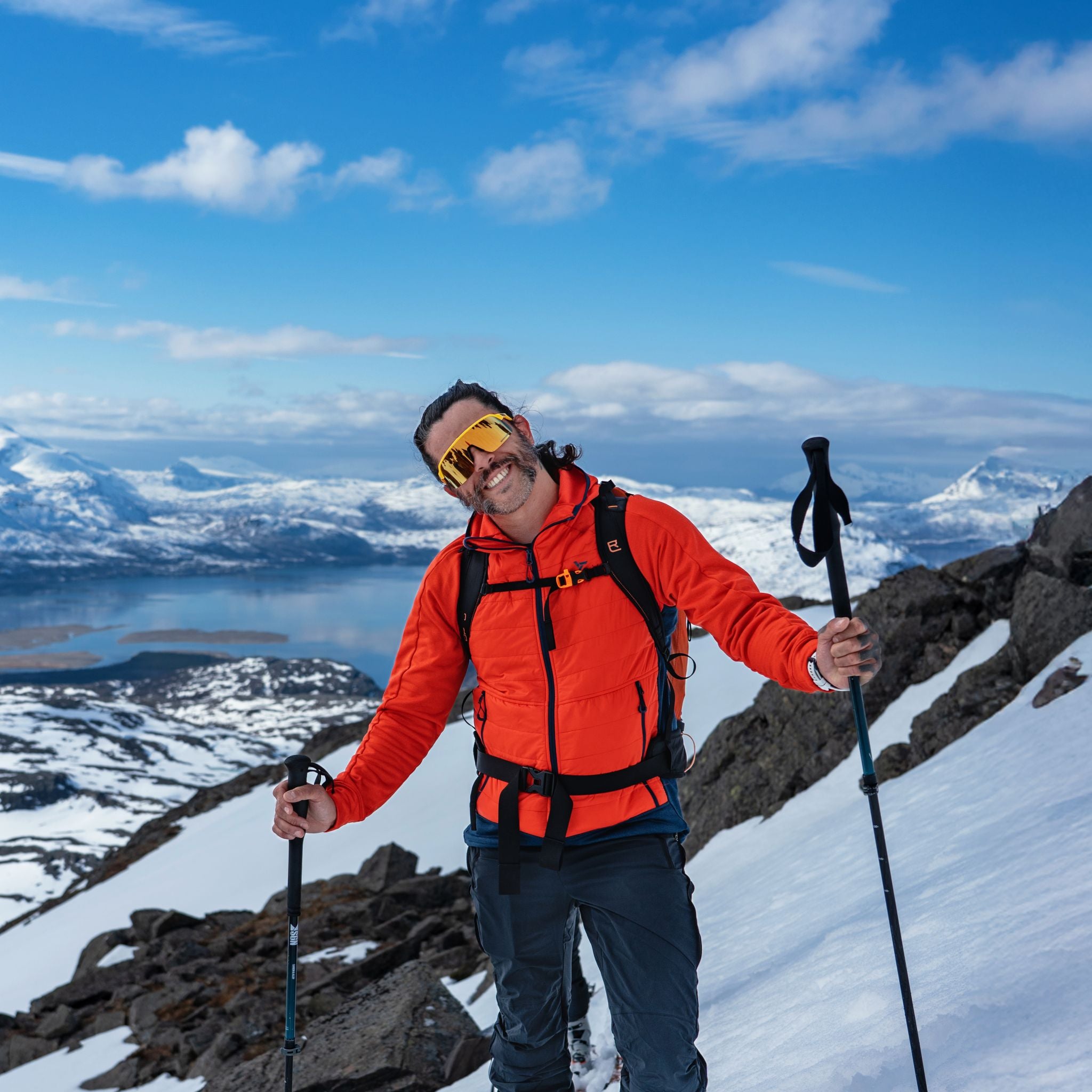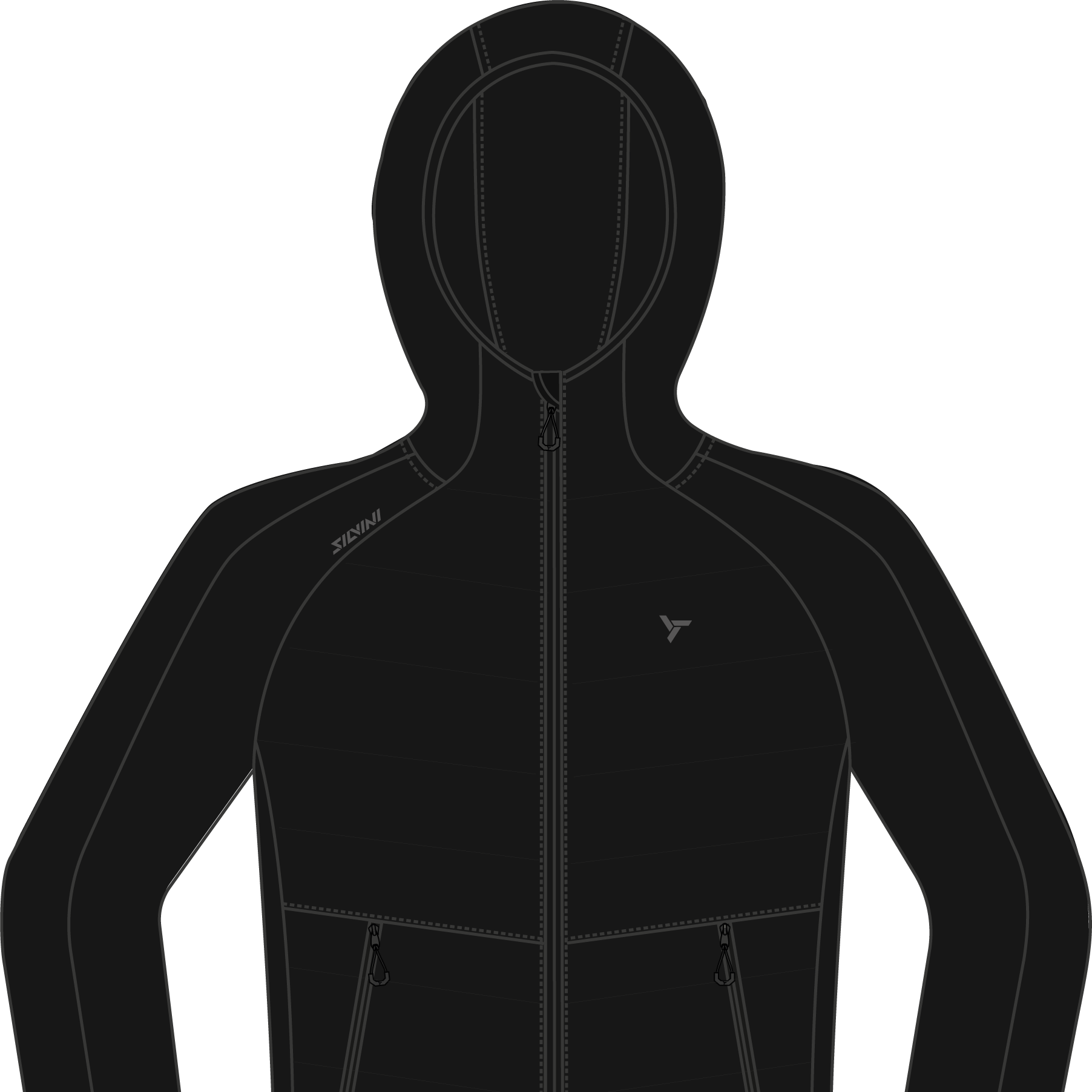 Men’s full-zip functional hoodie with Primaloft front insulation. Suitable for ski touring and outdoor activities. Can be worn as a lightweight outer or insulating layer.
