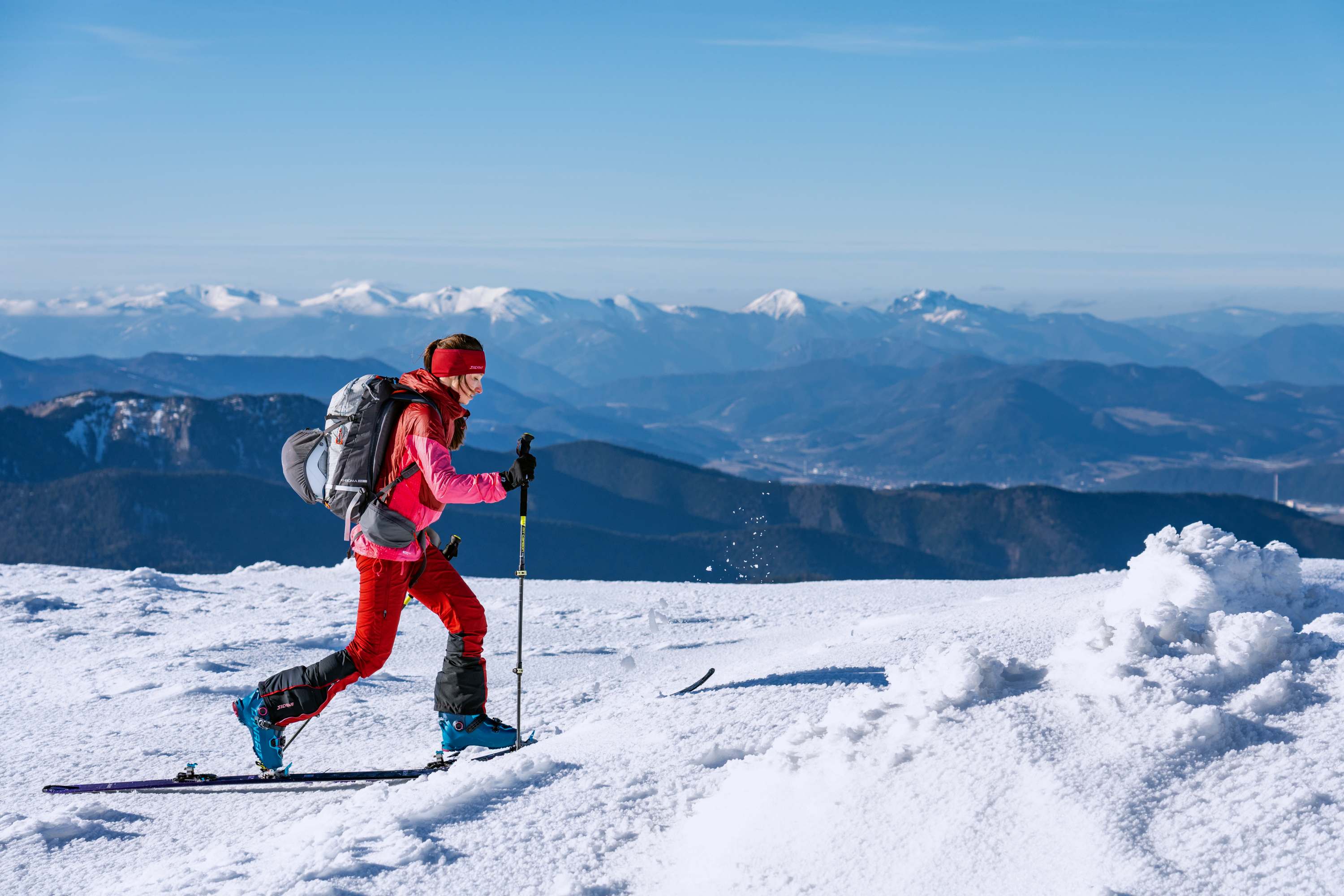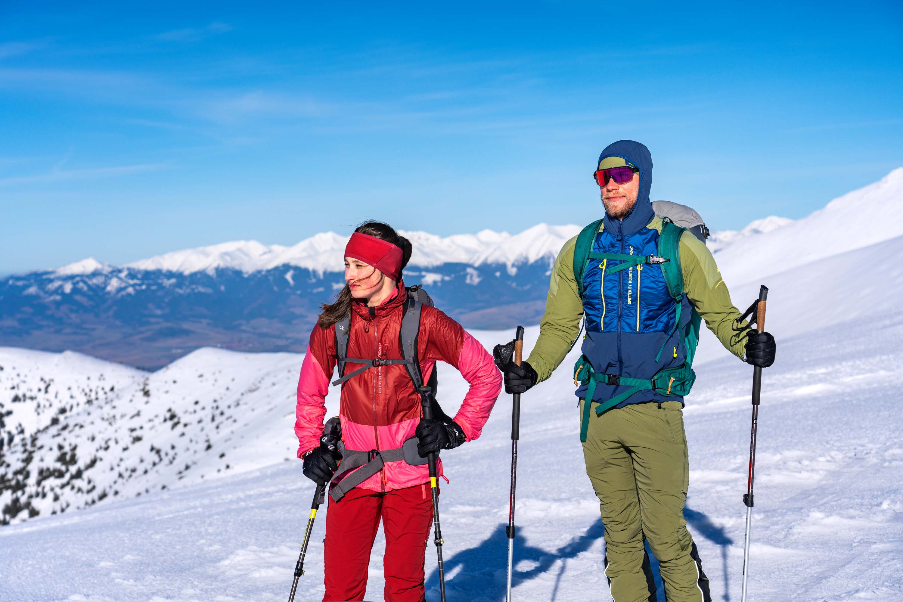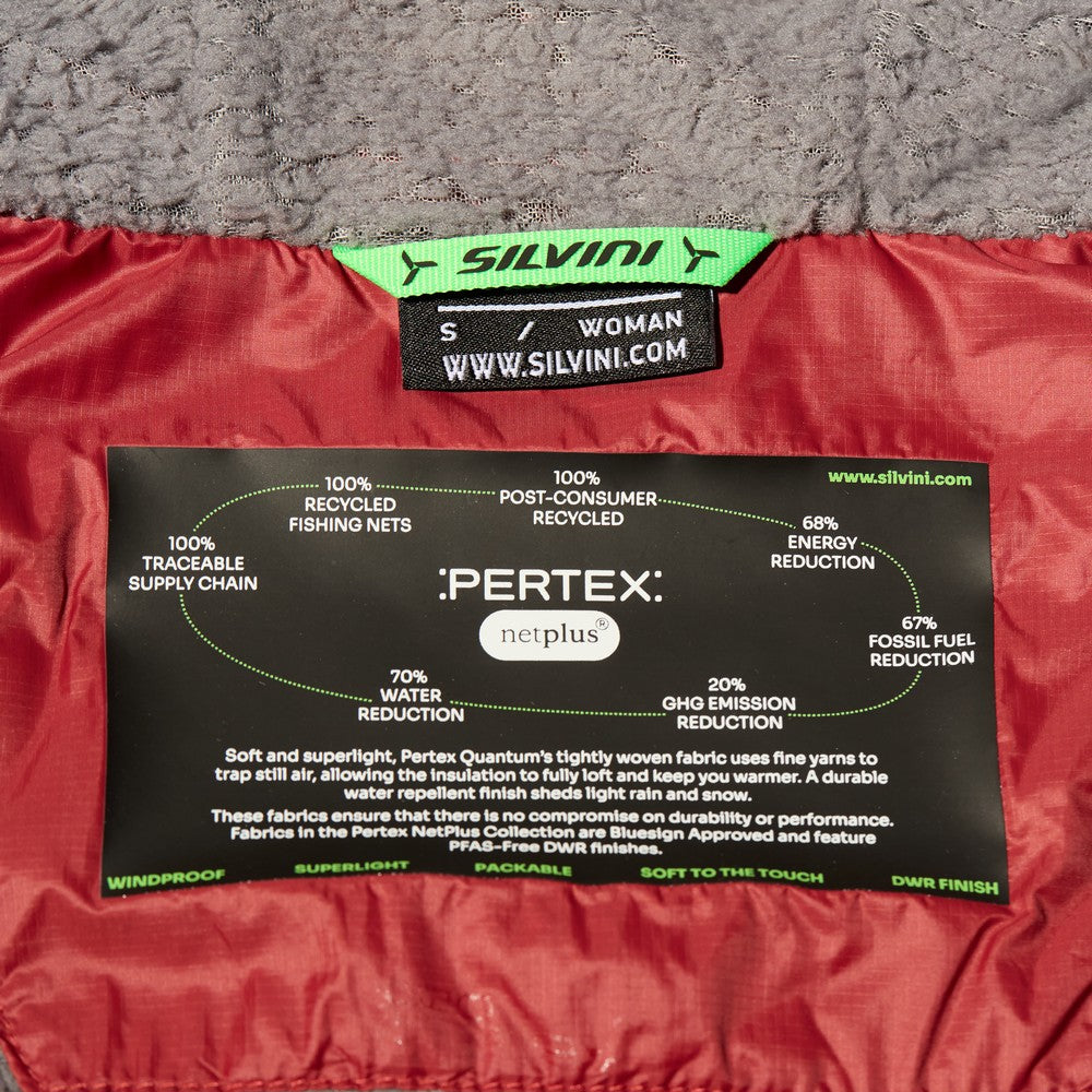 The Sassolunga women's jacket is lightweight, warm, and windproof, made from recycled materials, ideal for ski touring and outdoor activities in cold conditions.