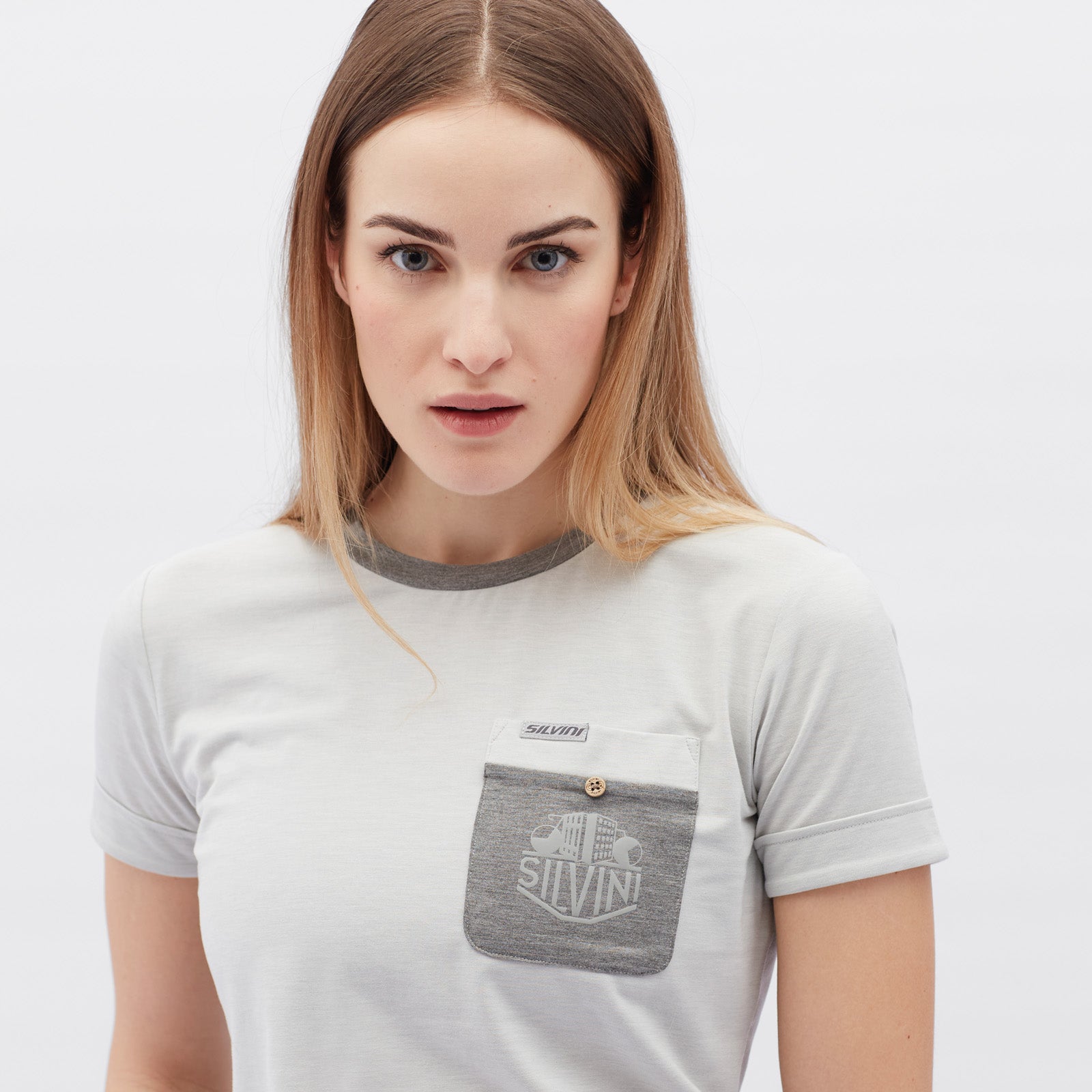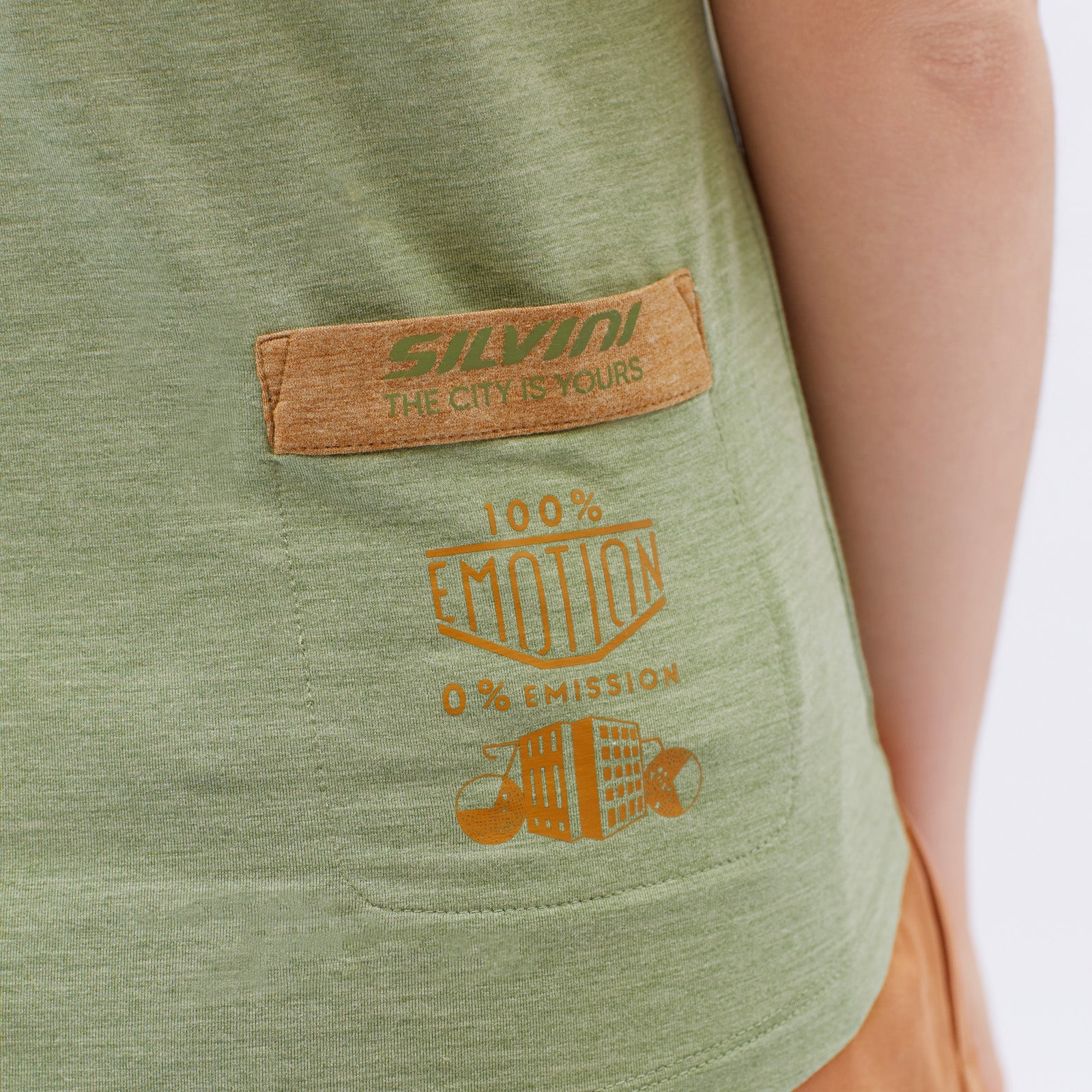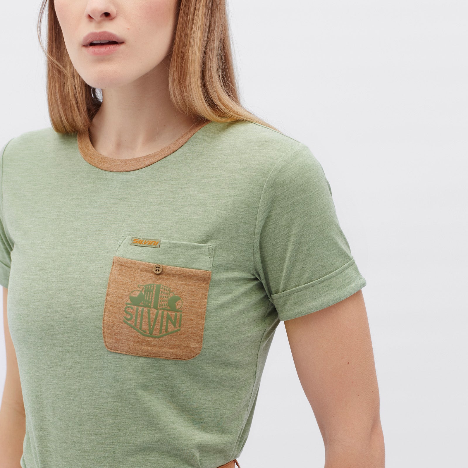 Calvisia women’s T-shirt made from soft recycled fabric with high modal content. Breathable, stretchy, with pocket and extended back, perfect for city life and leisure.
