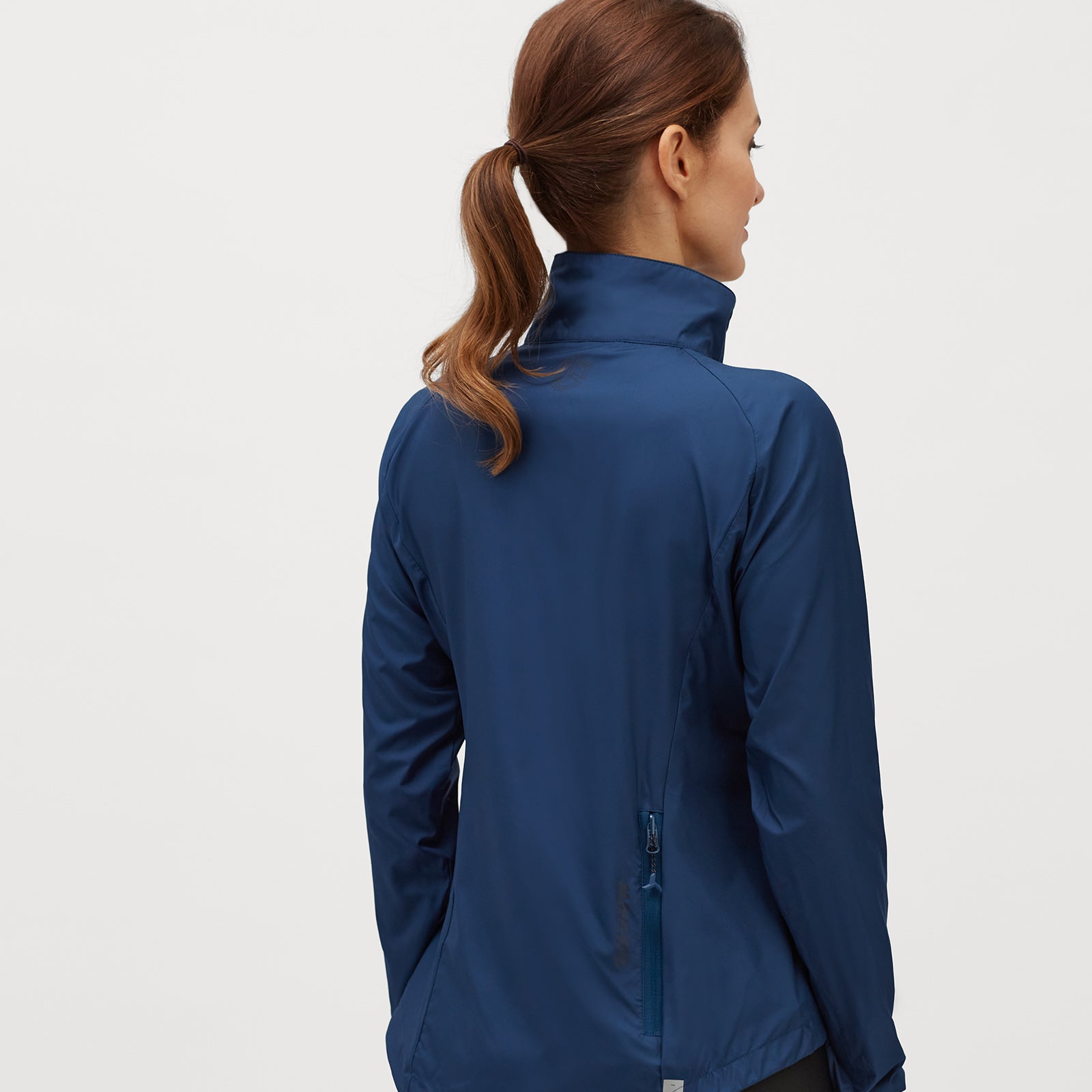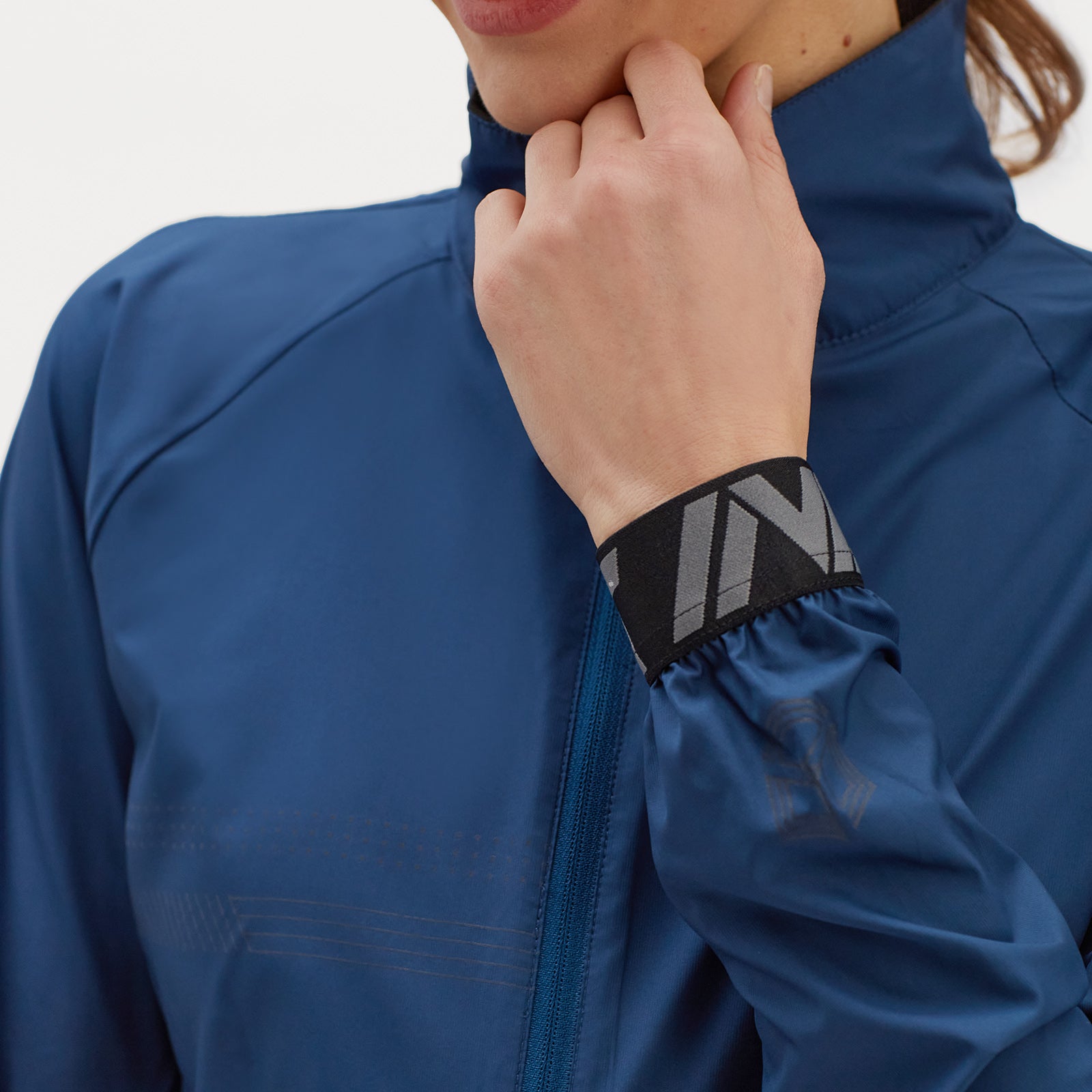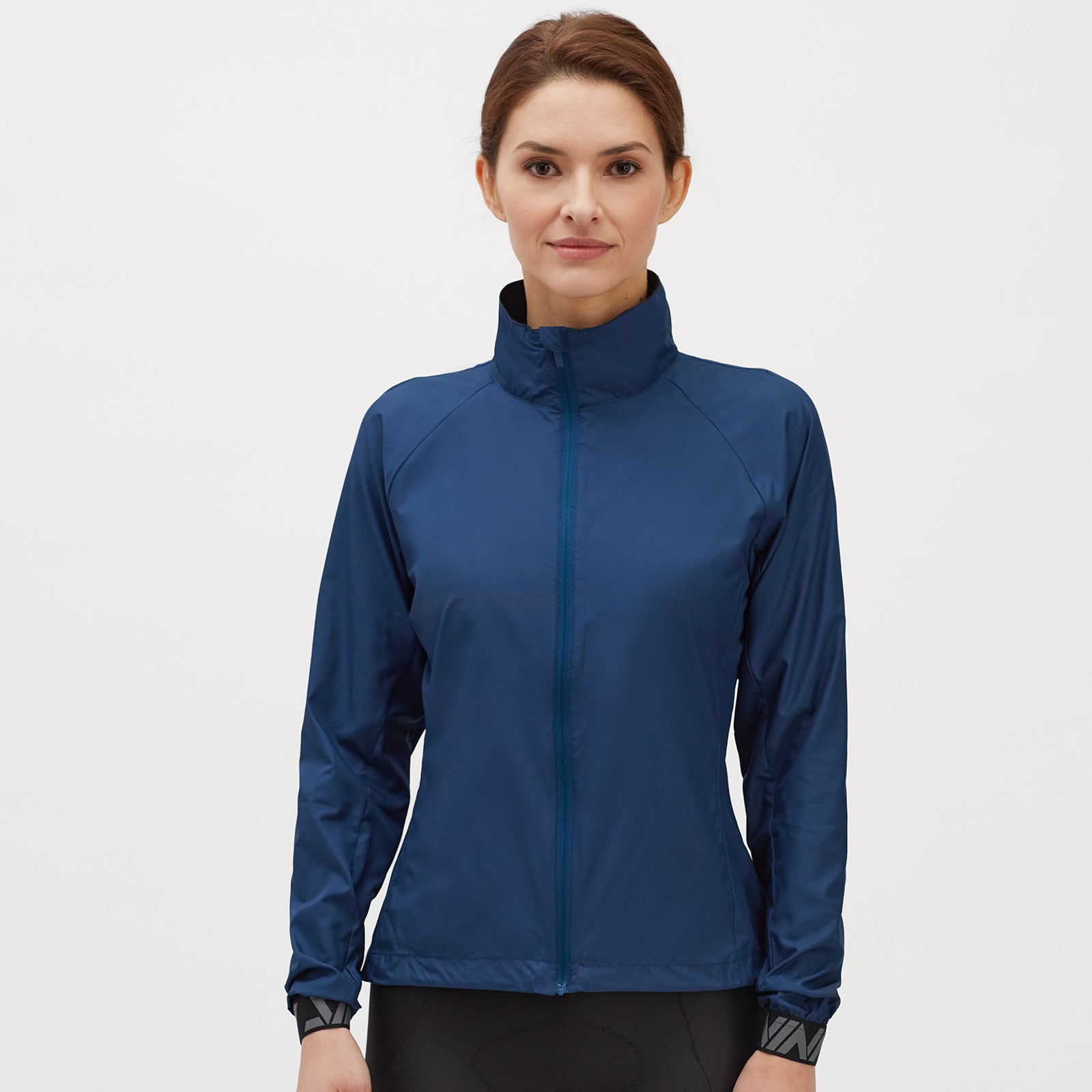 Women's windproof jacket adapted for riding a gravel bike made of Windbreaker material. The jacket is very light and easy to pack. It has a loose fit, several reflective elements and a back zipped pocket.