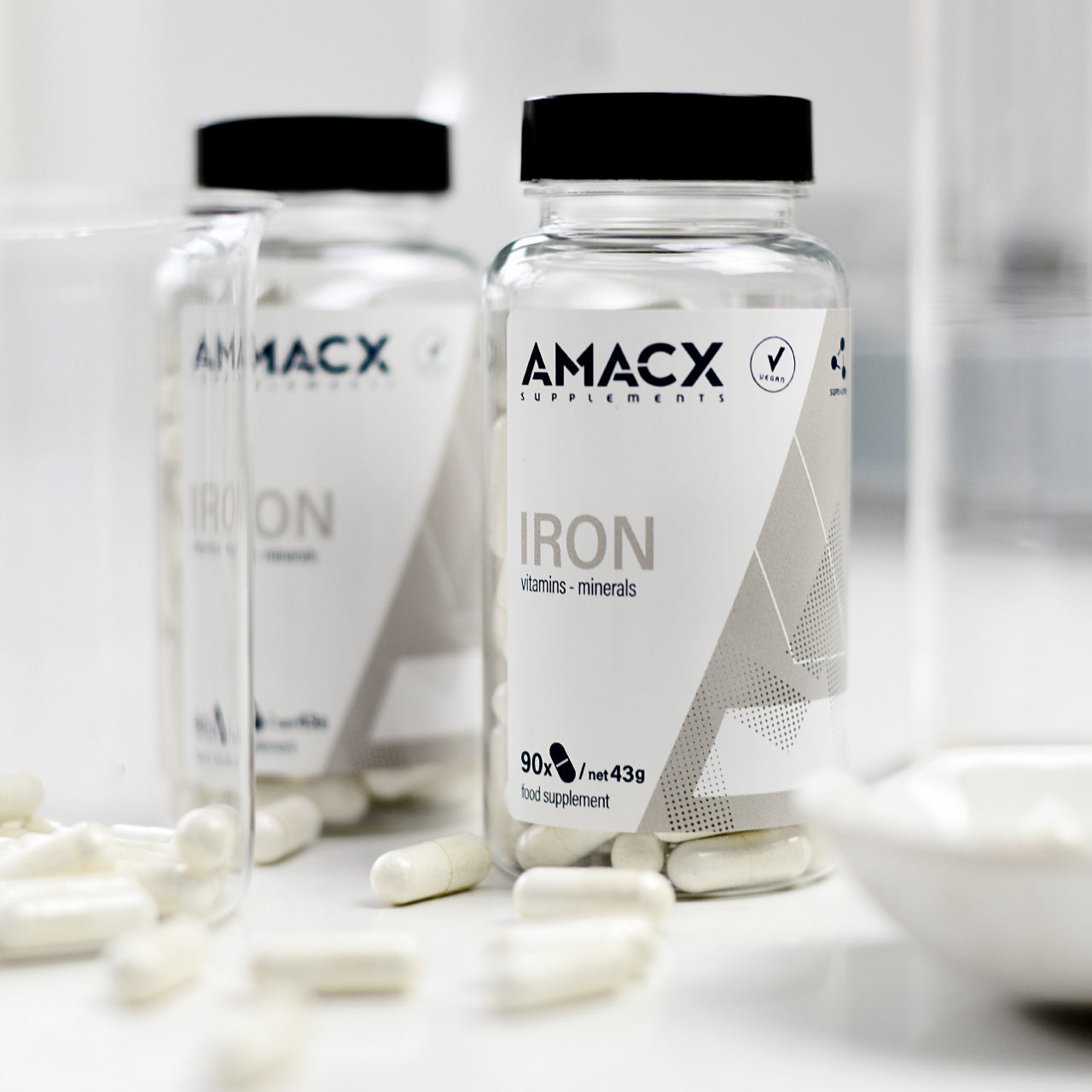 Amacx Iron supports energy levels and aids in the normal transport of oxygen in the body. Additionally, it boosts the body's immune system. Iron is a crucial mineral, especially in the realm of sports, as it is necessary for the production of hemoglobin. Hemoglobin resides in your red blood cells, facilitating the transportation of oxygen throughout your entire body. During endurance sports, such as running or cycling, ensuring an ample supply of oxygen to your muscles is crucial. Amacx Iron contributes to extra energy during fatigue, providing direct support to your sports performance.