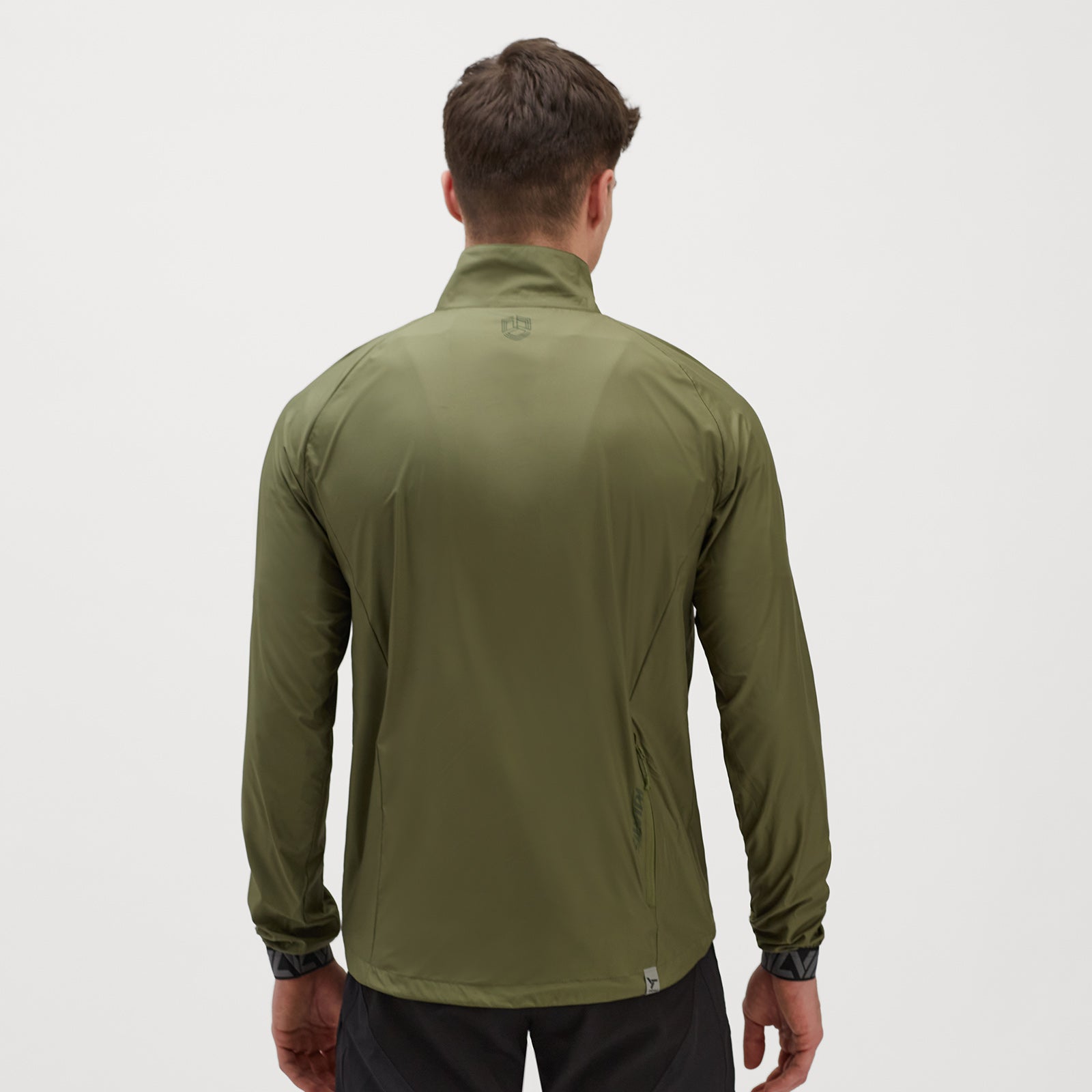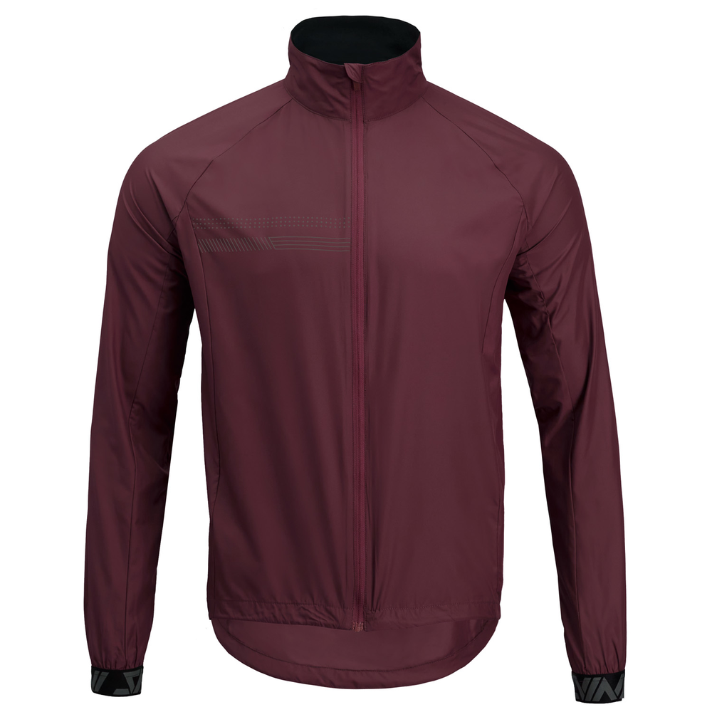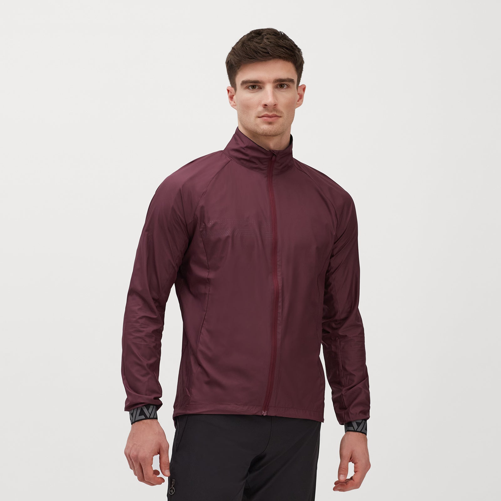Men's windproof jacket adapted for riding a gravel bike made of Windbreaker material. The jacket is very light and easy to pack. It has a loose fit, several reflective elements and a back zipped pocket.