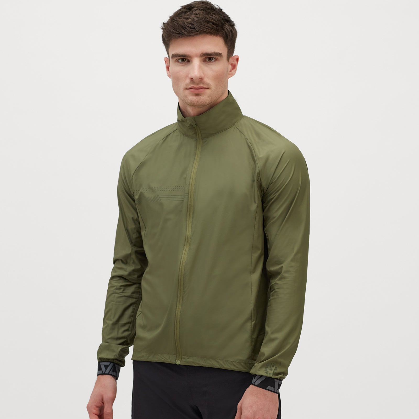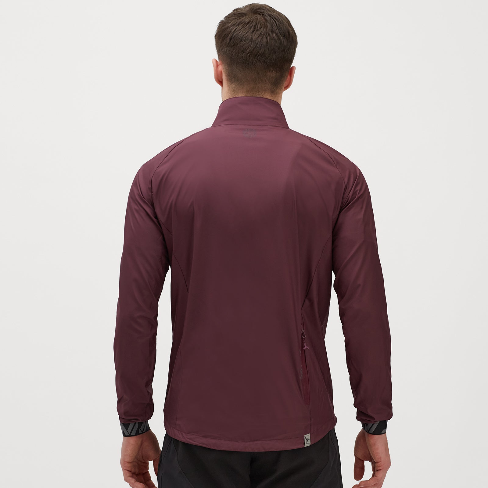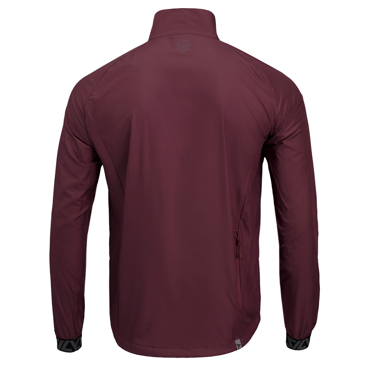 Men's windproof jacket adapted for riding a gravel bike made of Windbreaker material. The jacket is very light and easy to pack. It has a loose fit, several reflective elements and a back zipped pocket.